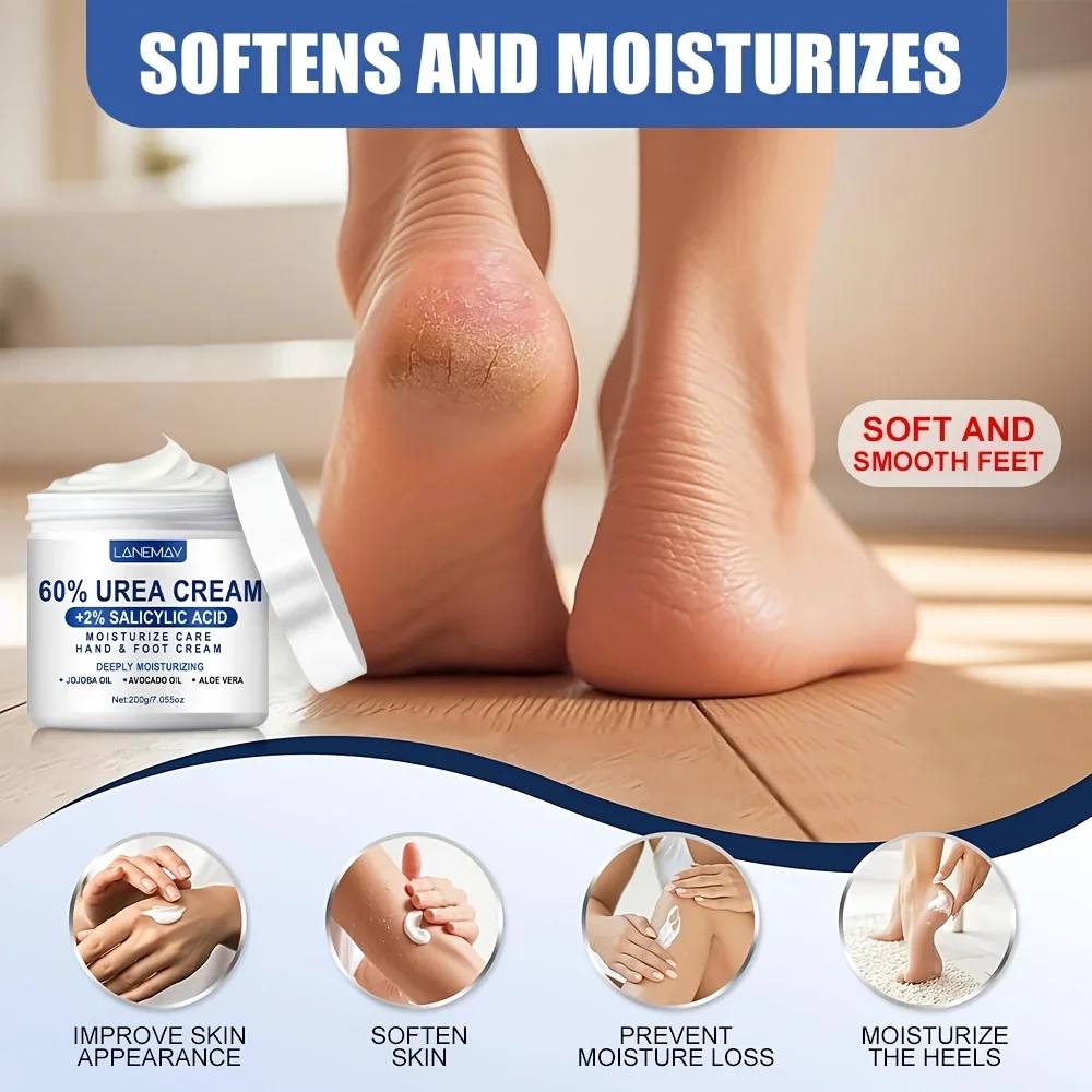 60% Urea Cream for Hand & Foot, Moisturizing Cream Rich in Salicylic Acid and Glycerin , Suitable for Dry, Rough, Cracked Heels